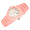 Obálka a řemínek v pastelově růžové barvě dodávají hodinkám jemný dívčí půvab, zatímco barevné indexy na světlém ciferníku umožňují pohodlné a příjemné čtení času. Oranžová vteřinová ručička dodává celkovému designu nádech svěžesti. Otočná luneta dodává hodinkám sportovní nádech, který odkazuje na klasické potápěčské modely, a vodotěsnost do 100 m dělá z těchto hodinek skvělého společníka pro každodenní nošení. K pohodlí navíc přispívá funkce data. tyto hodinky jsou ideální volbou pro všechny mladé módní nadšenkyně, které milují růžovou barvu a jemné detaily.