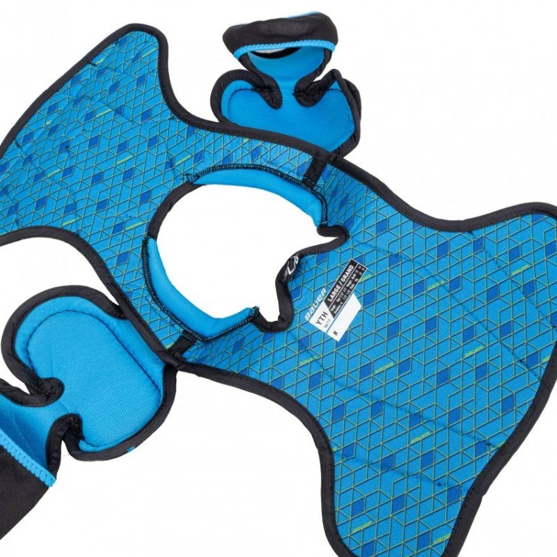 - Bauer použil velmi měkkou pěnu Flexcell a rukáv, aby se přizpůsobil ramennímu chrániči, což zajistí lepší pohodlí