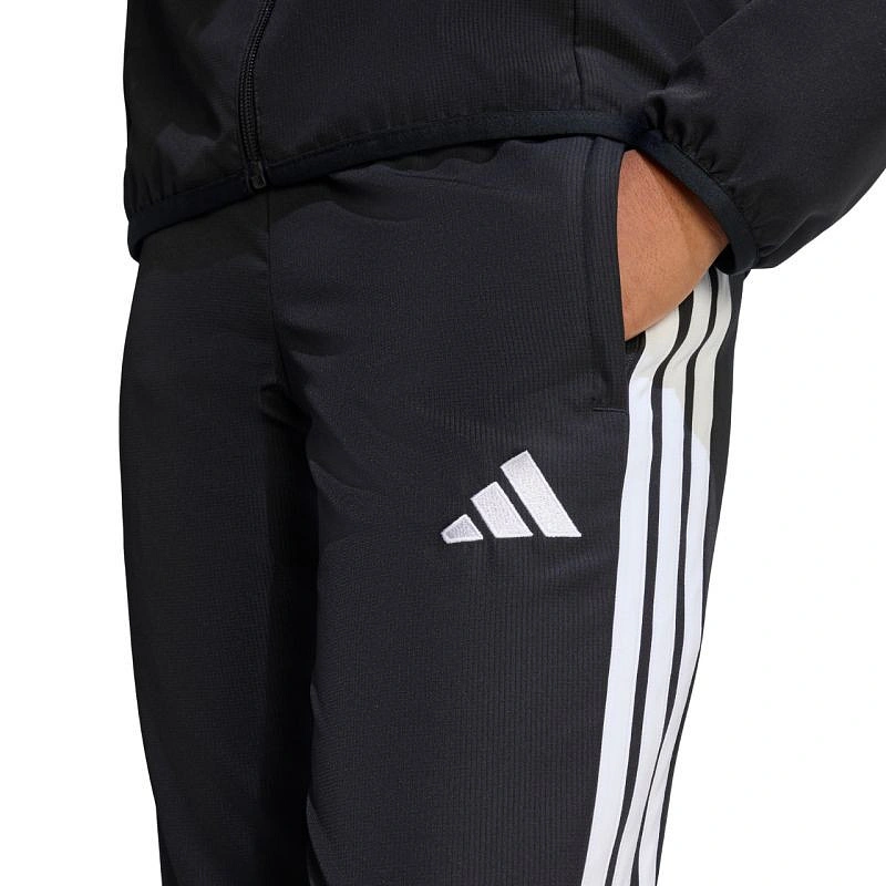 Dětské kalhoty adidas Tiro 26 League Presentation černé KA6418 Dětské kalhoty adidas jsou ideální pro chvíle, kdy odpočíváte mimo fotbalové trávníky. Pravidelný střih. Elastický pas s vnitřní stahovací šňůrkou. Boční kapsy na zip. Rozparek na nohavicích na zip. Recyklované vlákno z řady Tiro. Kalhoty vám poskytnou pohodlí a sportovní vzhled, když se zotavujete z tréninku. Materiál: 100% recyklovaný polyester.