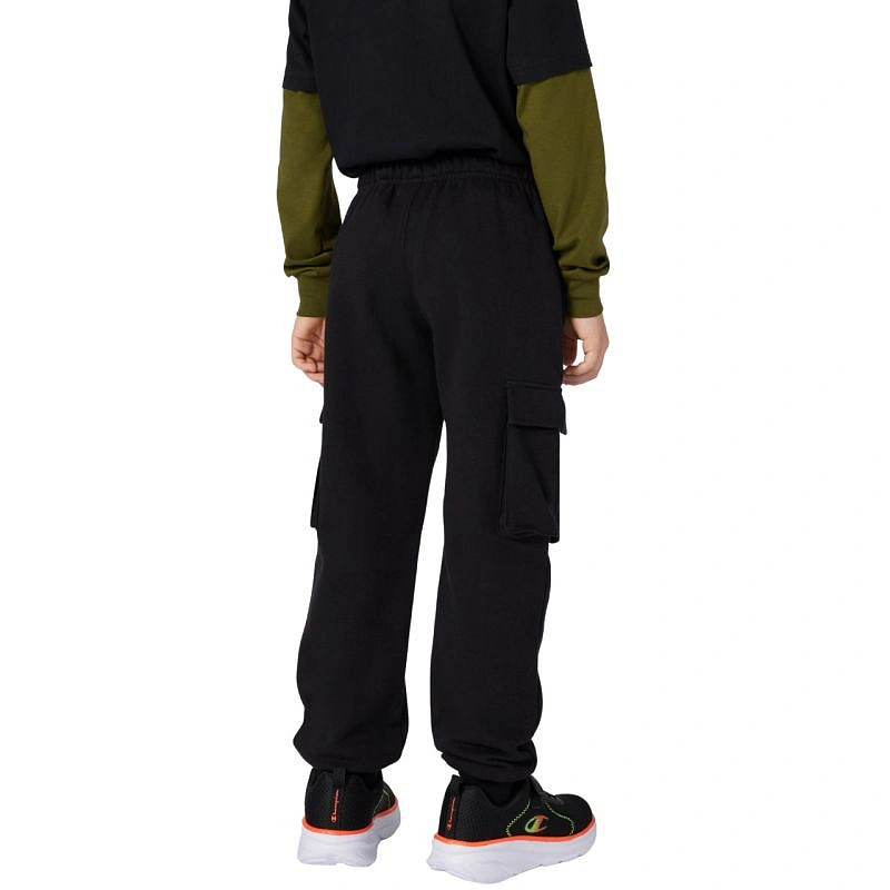 Dětské kalhoty Champion černé 307331 KK001 Dětské kalhoty Champion jsou ideální pro každodenní nošení. Zateplené. Standardní střih. Elastický pas s vnější šňůrkou pro nastavení. Konce nohavic se stahovací šňůrkou. Otevřené boční kapsy a dvě cargo kapsy se zapínáním na suchý zip. Materiál: 73 % bavlna, 27 % polyester.