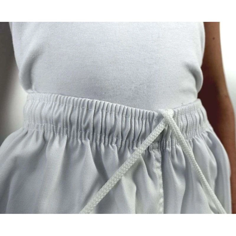 Kalhoty kimona kombinují tradiční vázání s dodatečnou elastickou šňůrkou, která v případě dětí výrazně zlepšuje používání oblečení tím, že zabraňuje sklouzávání kalhot při tréninku.