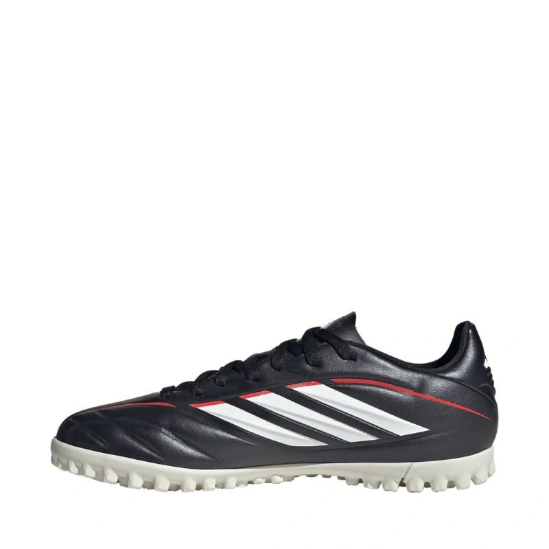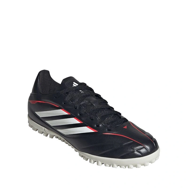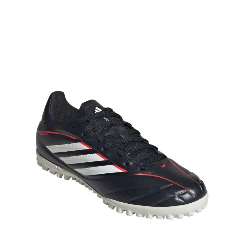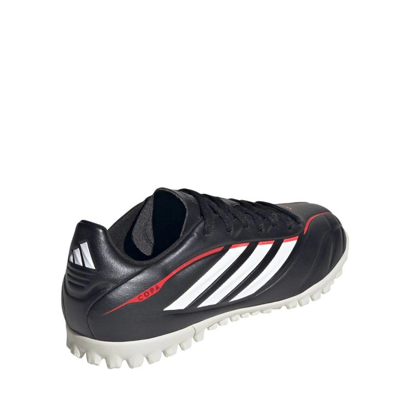 Dětské kopačky adidas Copa Pure IV Club TF JR6196 z kolekce adidas Black Pack, určené pro děti na hru na umělém trávníku. Syntetický svršek. 3D potisk. Šněrovací model. Standardní střih. Perforovaný elastický jazyk. Gumová podrážka pro přilnavost k trávníku. Úroveň: amatérská.