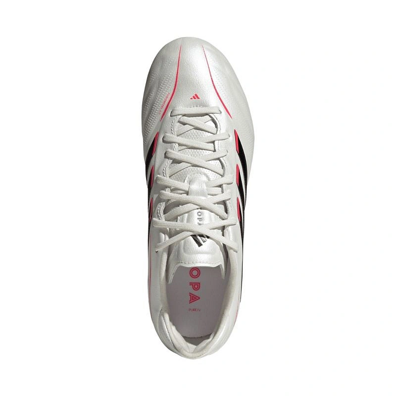 Dětské profesionální kopačky adidas Copa Pure IV Elite FG JR4406 jsou ideální na přírodní povrchy s tvrdým povrchem. Konstrukce je založena na technologii Fusionskin, což je méně prodyšná vrstva na svršku. Konstrukce jazyka Primeknit nabízí přizpůsobení a fixaci pro podporu pohodlí, zatímco polstrovaná stélka pomáhá dosáhnout anatomického střihu. Šněrování stabilizuje celkové přizpůsobení. Speciální umístění kolíků v podrážce zajišťuje správné rozložení tlaku. Podrážka s propracovanou konstrukcí kolíků poskytuje spolehlivou přilnavost. Obuv z kolekce Born For Goals Pack. Technické specifikace: - Standardní střih - Šněrování - Syntetická stélka - Syntetická podrážka - Technologie Fusionskin.
