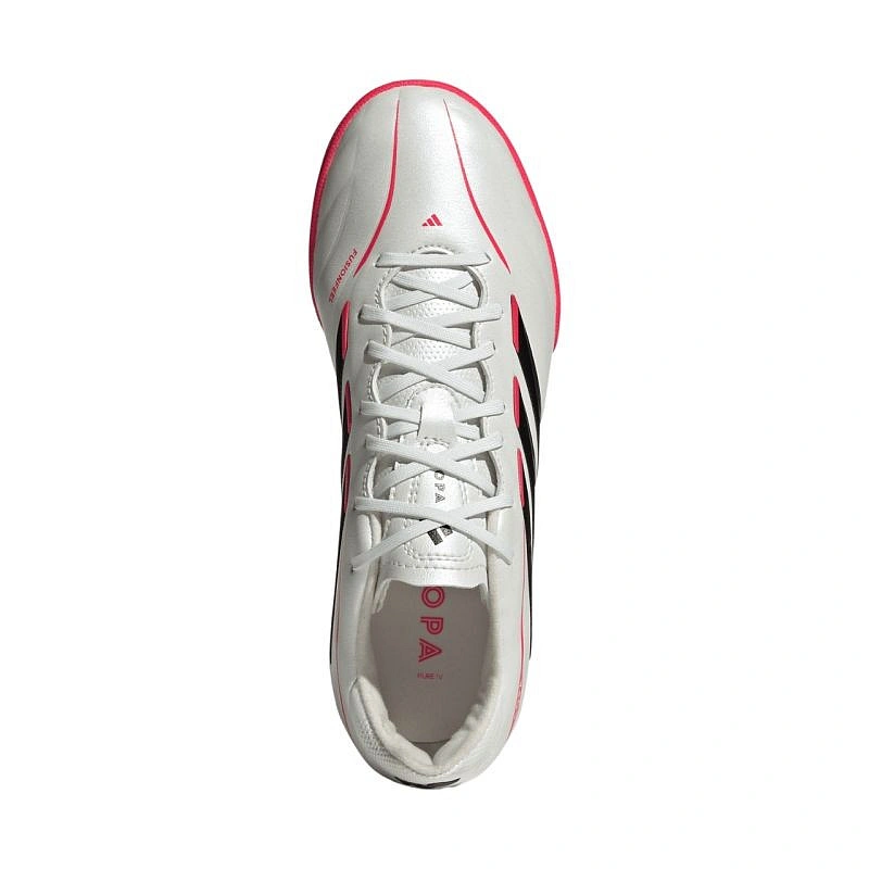 Dětské kopačky adidas Copa Pure IV League TF JR6260 Dětské poloamatérské kopačky adidas Copa jsou ideální na umělý trávník. Šněrovací model je součástí premiérové kolekce Born For Goals Pack, která byla navržena s ohledem na mladé fotbalisty. technologie adidas Fusionfeel. 3D hmatový potisk. polstrovaný, elastický jazyk. syntetická stélka. gumová podrážka.