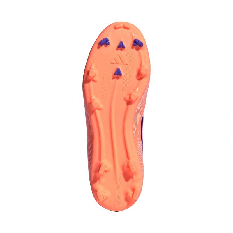 Dětské kopačky adidas F50 League FG/MG JH7746 Poloamatérské kopačky adidas jsou určeny pro děti, které dávají přednost hře na přírodním i umělém trávníku. Tento model pochází z premiérové kolekce Coral Blaze Pack. Silueta se dokonale přizpůsobí anatomickému tvaru chodidla. Svršek z vláknité kůže s potiskem Sprintgrid. Elastická konstrukce jazyka. Klasické šněrování usnadňuje přizpůsobení boty noze. Podešev Sprintplate 360 má hroty pro stabilitu a přilnavost k zemi. Tento výrobek je vyroben nejméně z 20 % z recyklovaných materiálů.