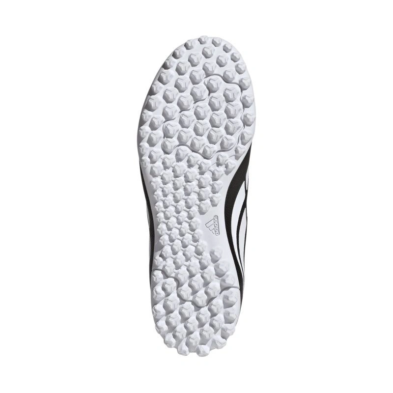 Dětské kopačky adidas Predator Club VEL TF KI8867 Dětské kopačky adidas Predator Junior z kolekce Black Pack na umělý trávník. Syntetický svršek s texturovanou strukturou. Širší přihrádka na prst pro podporu anatomických potřeb rostoucích nohou. Zapínání na suchý zip. Textilní vnitřek. Turfová podrážka pro přilnavost. úroveň: amatérská.