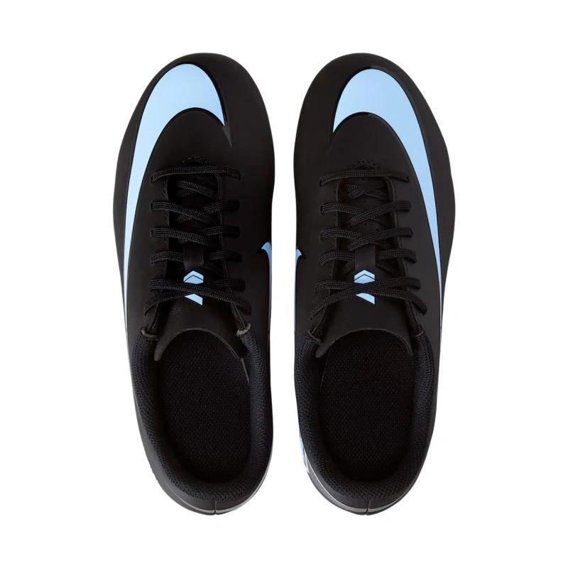 Dětské kopačky Nike Mercurial Vapor 16 Club FG/MG FQ8286 003 jsou ideální pro rekreační použití na přírodním nebo umělém trávníku z kolekce Nike Shadow Pack, mají svršek ze syntetické kůže s texturovaným povrchem, textilní podšívku, která tlumí nohu, polstrovanou stélku, která zvyšuje tlumení při každém kroku, a podrážku se strategicky umístěnými hroty.
