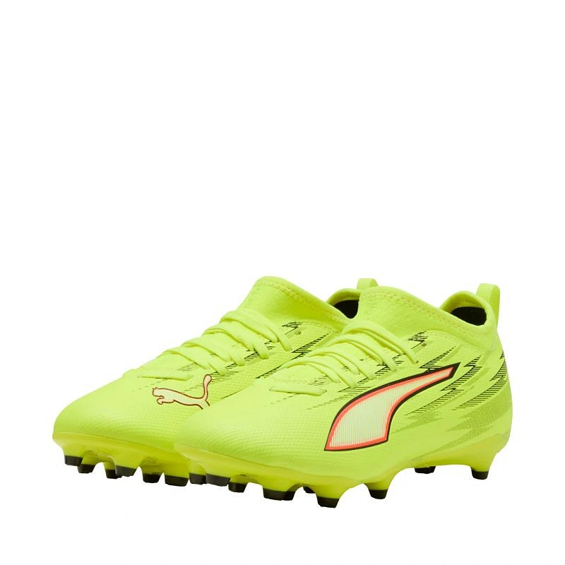 Puma Ultra 6 Match FG/AG 108701 01 Dětská tréninková fotbalová obuv z premiérové kolekce Unleashed Pack značky Puma je ideální pro hru na tvrdém, přírodním i umělém povrchu.svršek vyrobený z nejméně 30 % recyklovaného materiálu, nízké, pletené a klasické šněrování poskytuje extra podporu.textilní vnitřek.povrchová úprava GripControl zajišťuje vynikající kontrolu nad míčem při rychlých akcích na hřišti.podešev Speedsystem z pružného materiálu kombinuje vysoce výkonná vlákna a inovativní systém hrotů.konstrukce využívá hroty FastTrax a více zaoblených hrotů po stranách pro bezkonkurenční rychlost při hře na tvrdém, přírodním i umělém povrchu.madlo v zadní části.