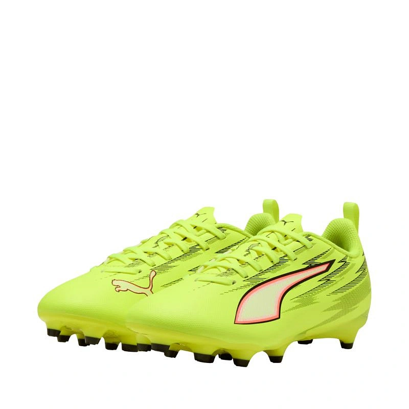 Puma Ultra 6 Play FG/AG 108705 01 Dětské kopačky Puma Ultra dodají vašim fotbalovým zápasům energii a rychlost. Rekreační kopačky z premiérové kolekce Unleashed Pack. Syntetický, lehký svršek s reliéfními detaily. Klasické šněrování. Podešev Speedsystem kombinuje vysoce výkonná vlákna a inovativní systém kolíků pro maximální návratnost energie a lepší zrychlení. Kolíky FastTrax a zaoblenější kolíky po stranách přispívají k velmi dobré přilnavosti na přírodním i umělém trávníku.
