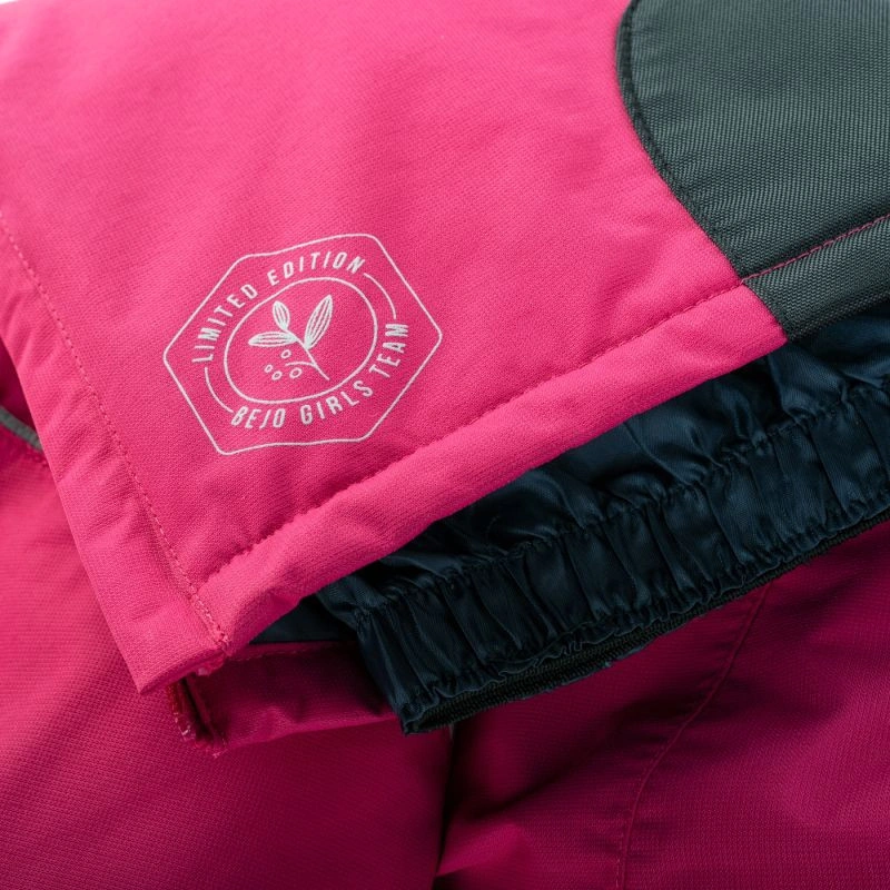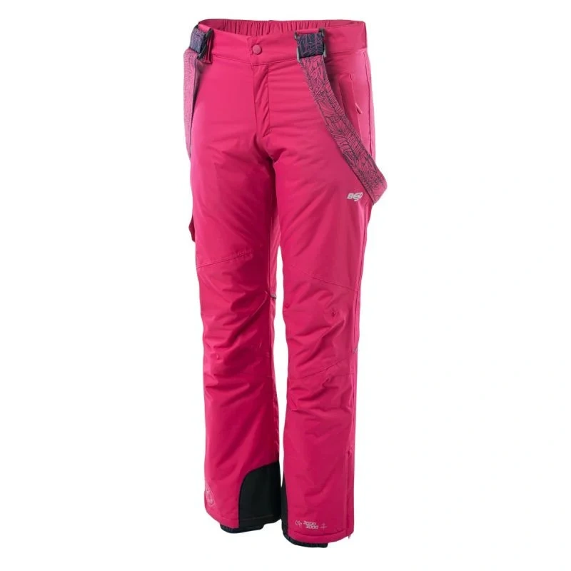 Vlastnosti: Dívčí lyžařské kalhoty. Nepromokavost 3 000 mm H₂O. Prodyšnost 3 000 g/H₂O/m². Podlepen