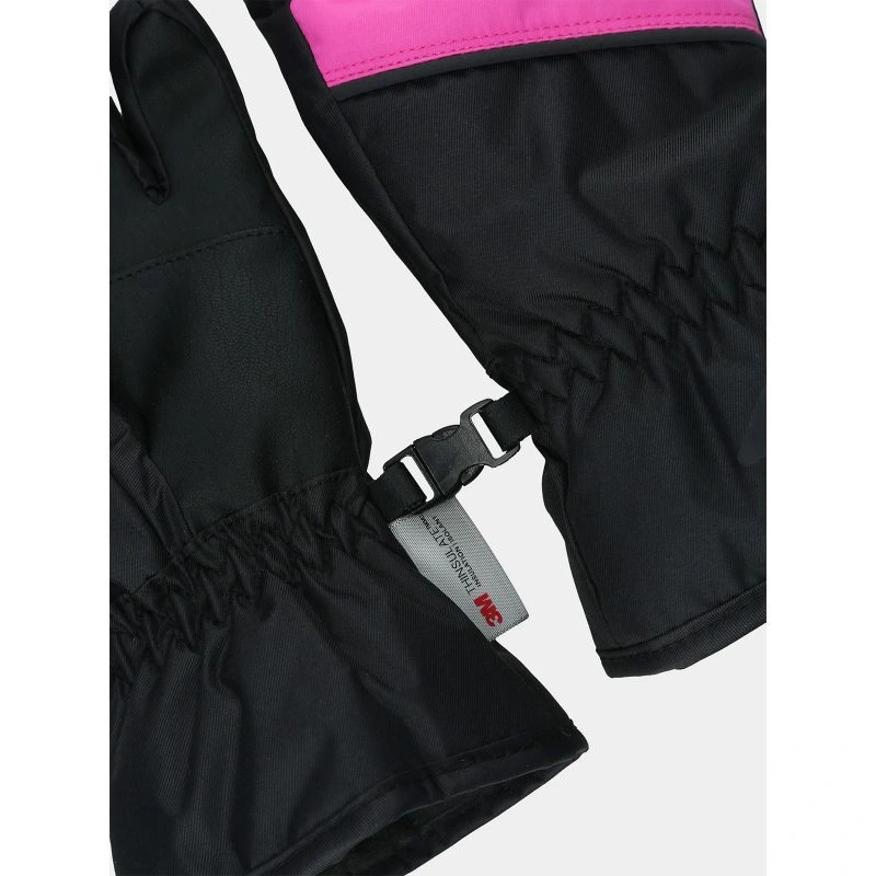 Ciepłe rękawice dla dzieci są wykonane z materiału syntetycznego, który zapewnia trwałość i jest łatwy w pielęgnacji. Rękawice narciarskie mają czesane wnętrze, które gwarantuje dodatkowe ciepło w chłodniejsze dni. Wyposażone w membranę NeoDry, dzięki której są odporne na niewielkie opady deszczu lub śniegu, a także zapewniają optymalne odprowadzanie wilgoci podczas zimowych aktywności.Hydrofobowa powłoka impregnacyjna pokrywa zewnętrzną warstwę materiału i zabezpiecza ją przed wchłonięciem wody. Powłoka sprawia, że wilgoć skrapla się na powierzchni tkaniny lub dzianiny, po czym swobodnie po niej spływa. Klamry do spięcia rękawic zapobiegną ich zgubieniu. Elastyczne taśmy, które można założyć na nadgarstki, aby mieć rękawiczki zawsze przy sobie nawet po ich ściągnięciu. Szerokie mankiety bez regulacji. Elastyczne nadgarstki ułatwią wygodne dopasowanie. Wewnętrzna część dłoni i palców wzmocniona tkaniną.