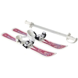 Dětské lyže Hamax s hůlkami růžové HAM561002 Dětské plastové lyže Hamax jsou ideální pro zimní aktivity. Díky nastavitelným páskům je lze přizpůsobit většině typů a velikostí obuvi. Lyže pomáhají dětem udržet rovnováhu a dělat první krůčky na sněhu. Model je vyroben z odolného plastu odolného proti chladu a dodává se s hůlkami. Technické údaje:- doporučený věk: 2-4 roky- doporučená maximální hmotnost: 18 kg- certifikováno: CE- materiál: PE / PP / PA / nylon- doporučeno jezdit pouze po rovném terénu- délka: 70 cm- sada obsahuje: 1 pár lyží, 1 pár holí.
