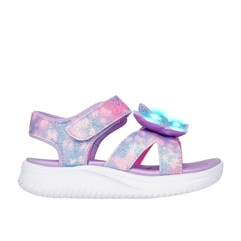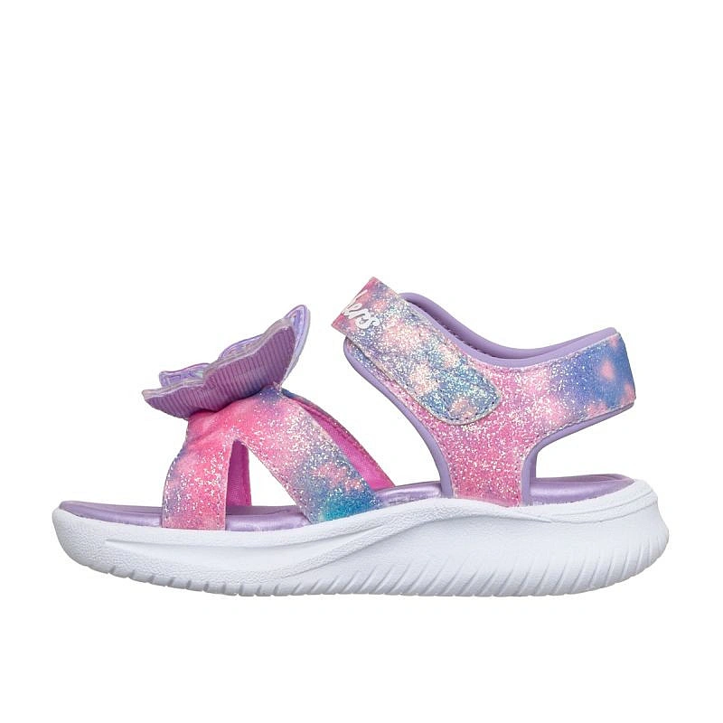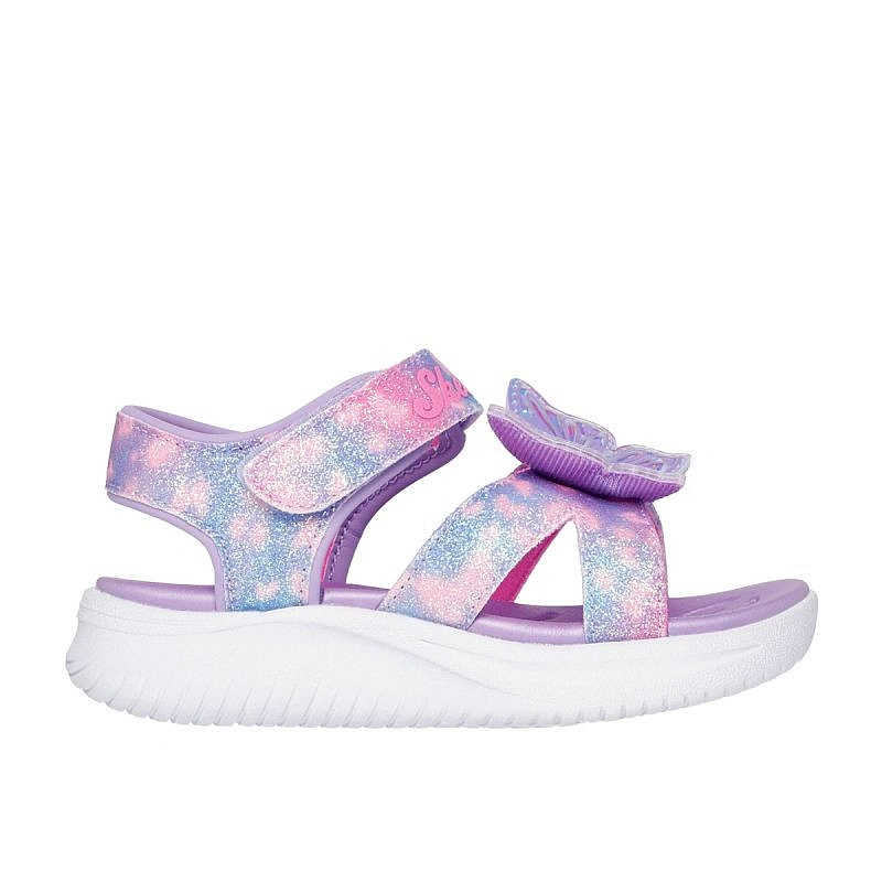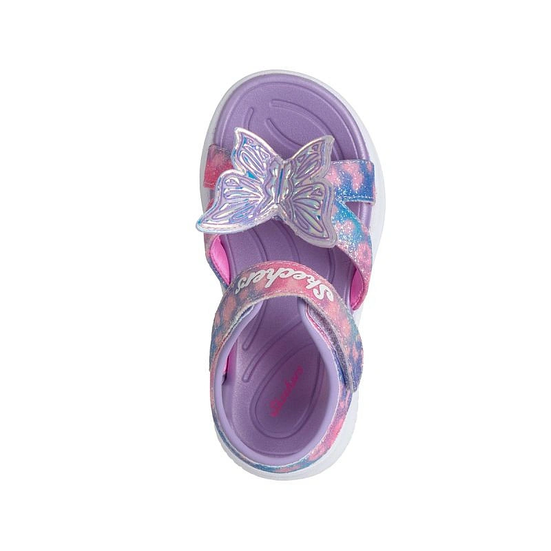 Rozjasněte jejich kroky závanem stylu v sandálech Skechers Jumpsters - Butterfly Brights. Tento svítící motýlí design má svršek s lesklým syntetickým páskem, nastavitelné zapínání Skechers a polstrovanou, pohodlnou stélku.