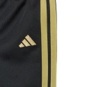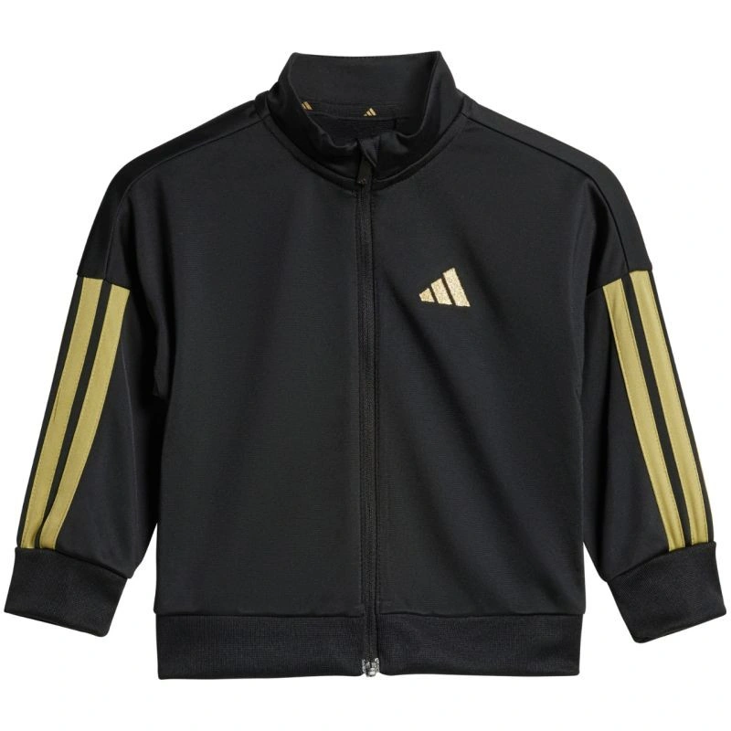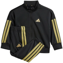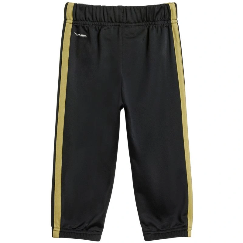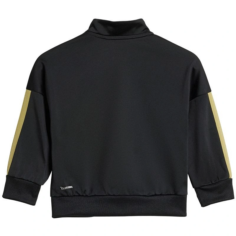 Dětská tepláková souprava adidas Essentials Climacool v černo-zlaté barvě JC8857 je ideální pro každodenní aktivity. Tkanina má rychleschnoucí vlastnosti. Technologie Climacool pomáhá odvádět pot od pokožky. Standardní střih. Mikina má zip po celé délce a stojáček. Manžety a spodní část mikiny mají žebrované lemy. Kalhoty mají elastický pas se šňůrkou pro nastavení a jsou zakončeny strečovými manžetami. Materiál: 100% recyklovaný polyester.