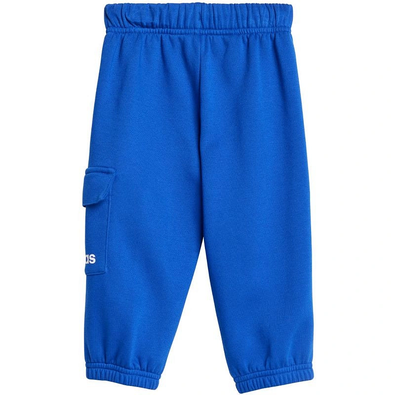Dětské tepláky adidas Essentials Joggers modré JE1381 jsou tepláky pro každodenní nošení vyrobené z bavlny a polyesteru. Tepláky mají standardní střih se zapínáním na patentky na rameni až do velikosti 86 cm. Kalhoty mají elastický pas se stahovací šňůrkou, elastické rozparky na nohavicích a cargo kapsy. Materiál: 70 % bavlna, 30 % polyester.