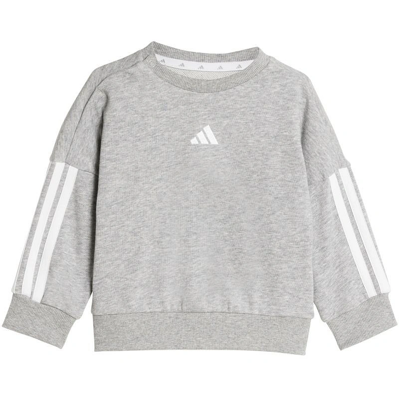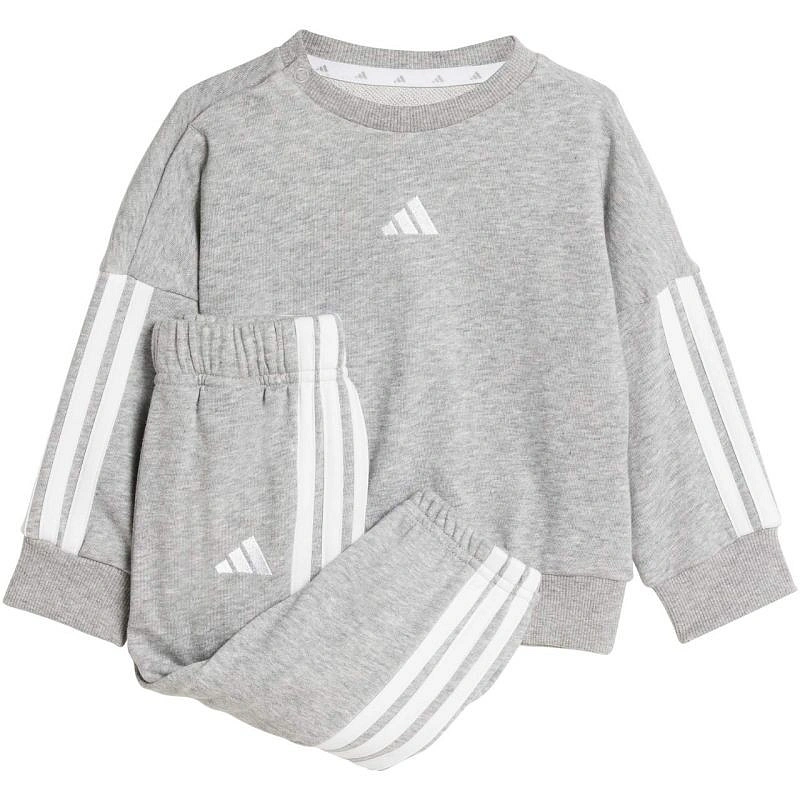 Dětské tepláky adidas Essentials Joggers šedé JV9852 Dětské tepláky adidas jsou ideální na každodenní nošení, mají mikinu a kalhoty. Tepláky jsou vyrobeny z bavlny a polyesteru a mají standardní střih. Mikina má zapínání na patentky na rameni až do velikosti 86 cm. Kalhoty mají elastický pas a nohavice mají elastické manžety. Materiál: 70 % bavlna, 30 % polyester.