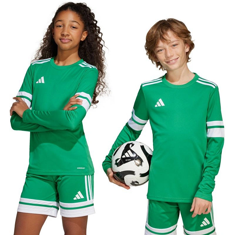 Dětské tričko adidas Squadra 25 s dlouhým rukávem zelené JN7491 Dětské tričko adidas Squadra 25 s dlouhým rukávem bude ideální pro zápasy hrané na fotbalovém hřišti, má minimalistický design, který nechává prostor pro týmové detaily. Rychleschnoucí tkanina. dlouhý rukáv. technologie Aeroready odvádí přebytečnou vlhkost. standardní střih. zaoblený výstřih. materiál: 100% recyklovaný polyester.