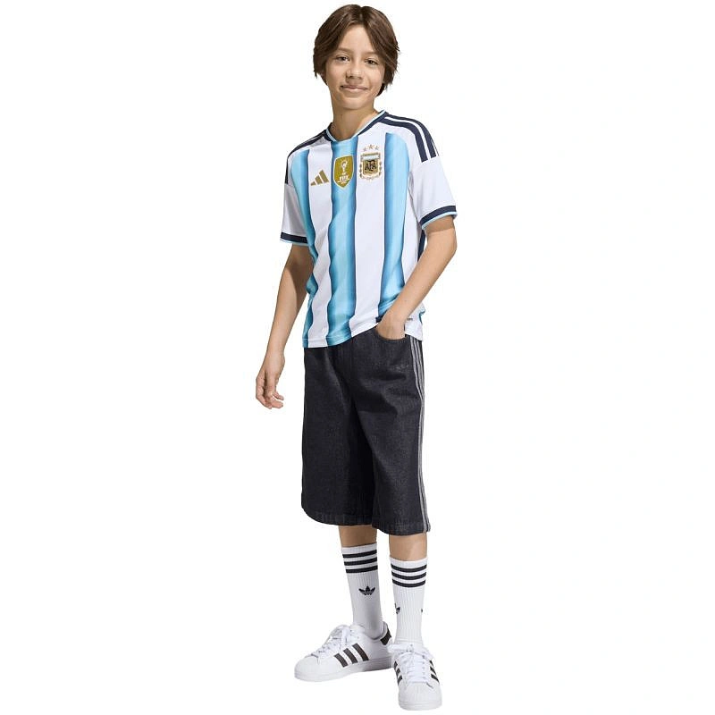 Dětské tričko adidas Argentina 26 KA8119 Základní tričko adidas Argentina 26. design inspirovaný historií argentinského národního týmu. technologie adidas Climacool zajišťuje tepelný komfort během cvičení tím, že odvádí přebytečnou vlhkost. rychleschnoucí tkanina díky technologii Quick Drying. tři pruhy na rukávech a našité týmové znaky na přední straně. materiál: 100% recyklovaný polyester.
