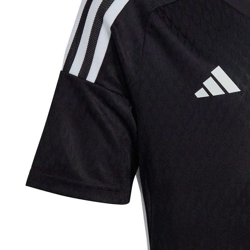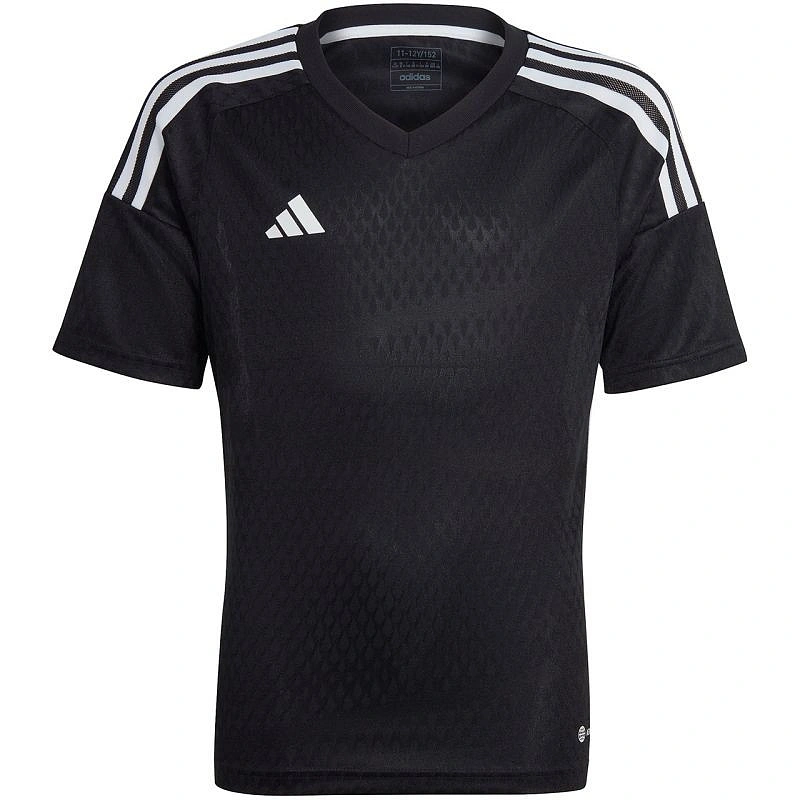 Dětské tričko adidas Tiro 23 Competition Match Jersey černé IC7461 Dětské tričko adidas je ideální na fotbalové turnaje. regular fit. trojúhelníkový výstřih. síťované panely v podpaží. technologie Aeroready odvádí přebytečnou vlhkost. recyklovaná vlákna. materiál: 100% recyklovaný polyester.