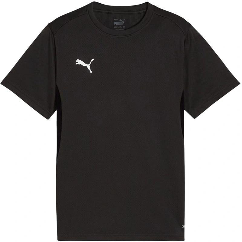 Dětský dres Puma TeamGoal Jersey černý 658637 03 Dětský dres Puma TeamGOAL Jersey se bude dobře hodit na trénink i na zápas.Je vyroben z odolné a funkční syntetické tkaniny, která zajišťuje prodyšnost a odvod vlhkosti.Jednoduchý, výrazný design a barevné schéma a malé logo Puma na hrudi podtrhují sportovní styl a umožňují vytvořit fotbalovou soupravu, která bude ladit s barvami vašeho týmu.Střih Regular Fit s krátkými rukávy.Technické údaje:- materiál: 100% recyklovaný polyester.