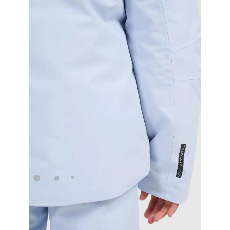 Integrovaná kapuce s nastavitelným objemem a sněhový pás poskytují účinnou ochranu před sněhem a větrem. Systém Grow-Up umožňuje dvoustupňové nastavení délky rukávů, takže se bunda přizpůsobí výšce dítěte.