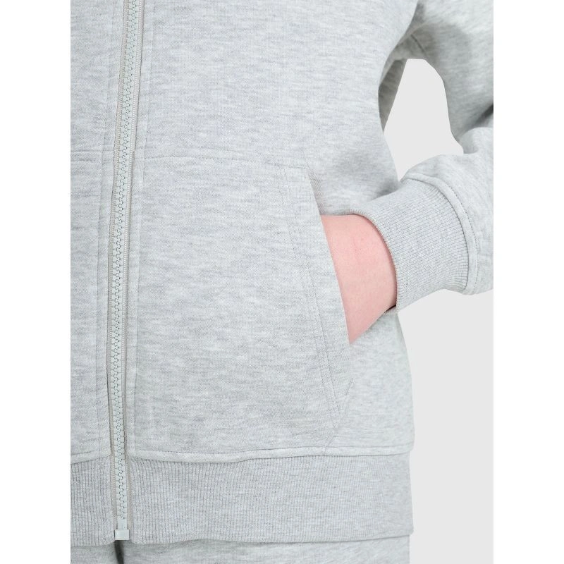 tato dívčí mikina 4F s rozepínáním je navržena pro každodenní pohodlí a naprostou volnost pohybu. Střih oversize poskytuje volný, pohodlný střih na těle, zatímco hladce lícovaná pletenina single jersey zajišťuje pružnost a vysokou úroveň pohodlí při nošení. Je vyrobena ze 79 % z bavlny a 21 % z polyesteru a kombinuje měkkost, odolnost a pohodlnost při nošení. Jednostranně počesaný vnitřek poskytuje extra teplo, takže mikina je ideální pro chladnější dny. Integrovaná kapuce, manžety a spodní lem s žebrovanými manžetami a 2 otevřené boční kapsy zvyšují funkčnost. Zapíná se na jednosměrný zip a je ideální volbou pro každodenní nošení, do školy nebo na venkovní aktivity.