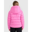 tato dívčí péřová bunda s nízkým objemem je navržena pro každodenní pohodlí a aktivity v chladnějších a zamračených dnech. Syntetická výplň uspořádaná do klasického horizontálního prošívání poskytuje teplo bez namáhání a zachovává si své vlastnosti i při vystavení vlhkosti. Vodoodpudivá vrstva snižuje nasákavost a technologie 4FWarm podporuje tepelný komfort v různých povětrnostních podmínkách. Pravidelný střih, standardní délka a elastické lemy manžet a spodního lemu zajišťují pohodlné nošení, zatímco integrovaná kapuce a stojáček chrání před větrem. Díky lehké konstrukci se bunda snadno skládá a skladuje - ideální pro vrstvení a každodenní nošení.