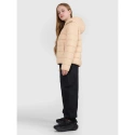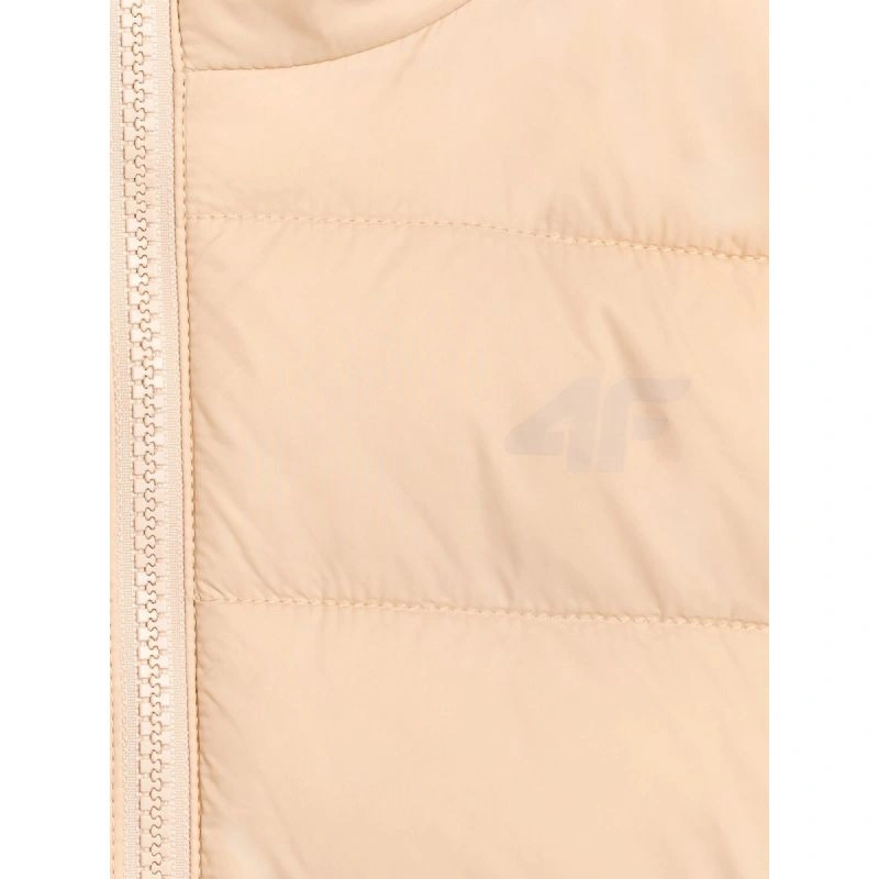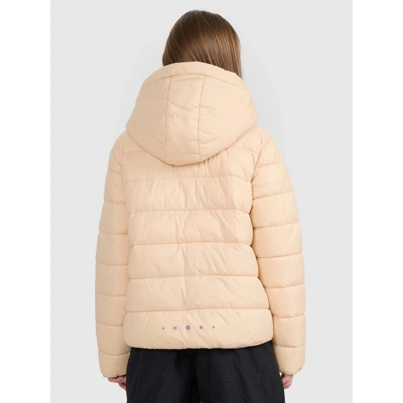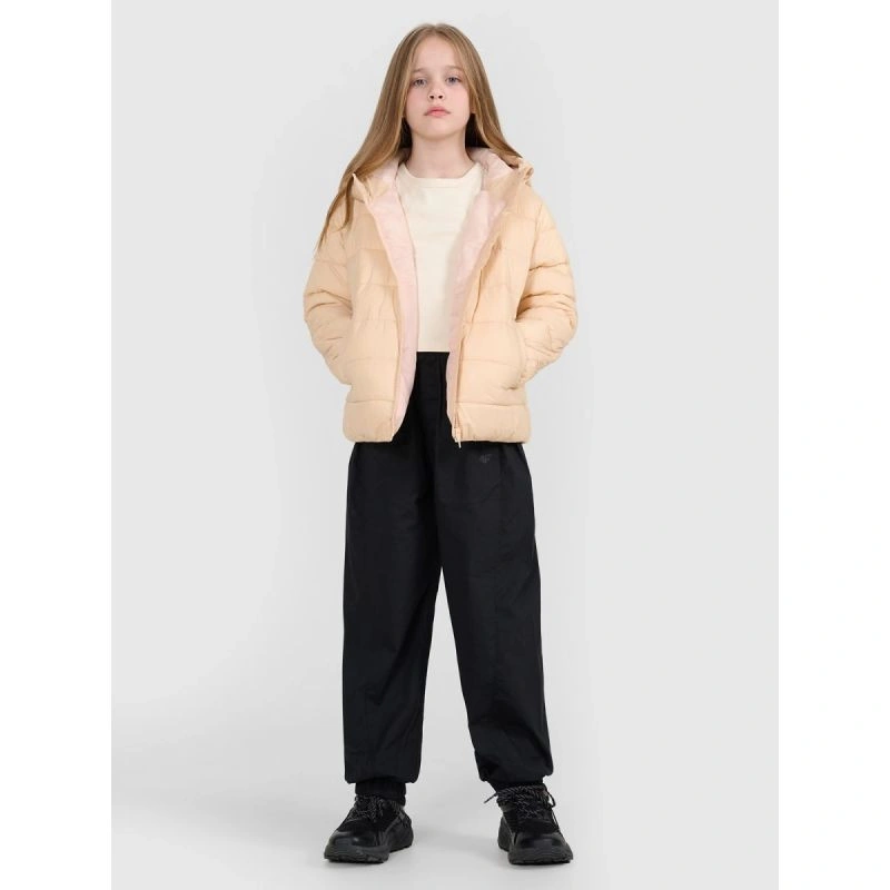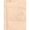 tato dívčí péřová bunda s nízkým objemem je navržena pro každodenní pohodlí a aktivity v chladnějších a zamračených dnech. Syntetická výplň uspořádaná do klasického horizontálního prošívání poskytuje teplo bez namáhání a zachovává si své vlastnosti i při vystavení vlhkosti. Vodoodpudivá vrstva snižuje nasákavost a technologie 4FWarm podporuje tepelný komfort v různých povětrnostních podmínkách. Pravidelný střih, standardní délka a elastické lemy manžet a spodního lemu zajišťují pohodlné nošení, zatímco integrovaná kapuce a stojáček chrání před větrem. Díky lehké konstrukci se bunda snadno skládá a skladuje - ideální pro vrstvení a každodenní nošení.
