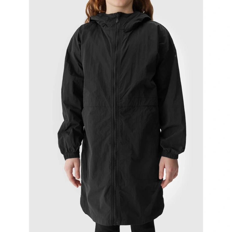 Dziewczęca kurtka typu parka to idealny dodatek do każdego casualowego lub sportowego stroju. Nie tylko zapewnia ciepło w łagodniejsze dni, ale jest również wykonany z trwałego materiału syntetycznego, który wymaga minimalnej konserwacji.Ubranie ma obszerny, oversize'owy krój, który zapewnia luźny krój i dużą swobodę ruchów. Dodatkowo posiada przedłużoną długość sięgającą przed kolano.