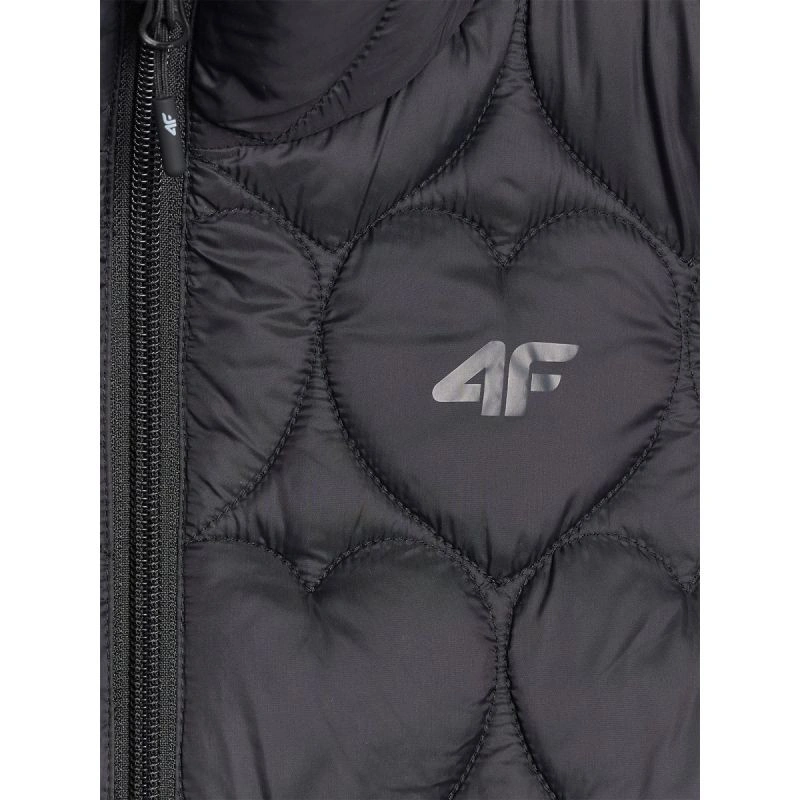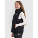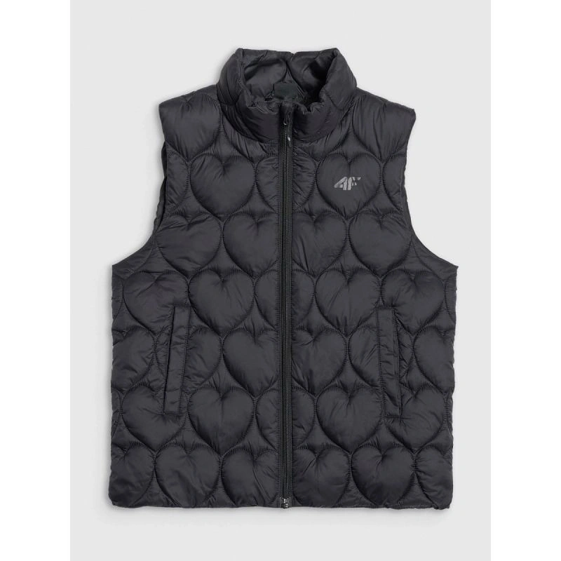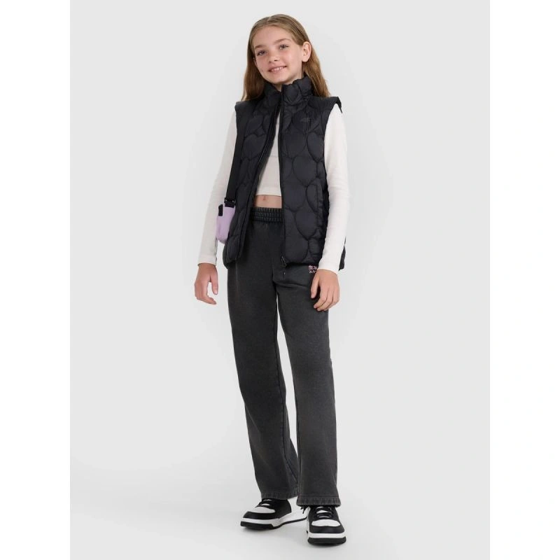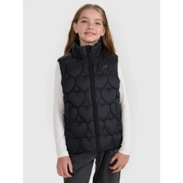 tato prošívaná dívčí vesta bez rukávů je ideální vrstvou pro teplejší, zamračené dny přechodného období. Lehká polyesterová izolace poskytuje teplo, aniž by vás zatěžovala, zatímco vodoodpudivá vrstva snižuje absorpci vlhkosti a chrání vás tak před lehkým deštěm. Prošívané panely izolují teplo, zatímco ozdobné prošívání se srdíčky dodává oděvu okouzlující nádech a zdůrazňuje jeho dívčí charakter. Střih oversize a standardní délka přes boky zajišťují každodenní pohodlí, zatímco integrovaná kapuce a vysoký límec poskytují dodatečnou ochranu před chladem. Zip s větrným záhybem snižuje tepelné ztráty, zatímco dvě boční kapsy umožňují udržet ruce v teple nebo schovat drobné předměty. Jedná se o lehkou, praktickou a mimořádně roztomilou vestu pro aktivní dívky.