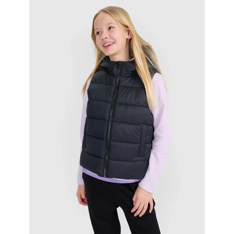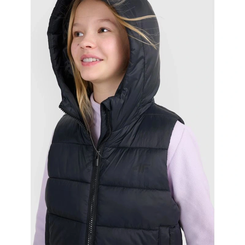 Dívčí péřová vesta bez rukávů 4F je vynikající volbou pro chladnější dny a kombinuje tepelný komfort s funkčností. Díky mírnému objemu výplně poskytuje vesta dostatečnou izolaci proti chladu, aniž by zatěžovala siluetu, a umožňuje plnou volnost pohybu při každodenních i sportovních aktivitách.