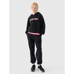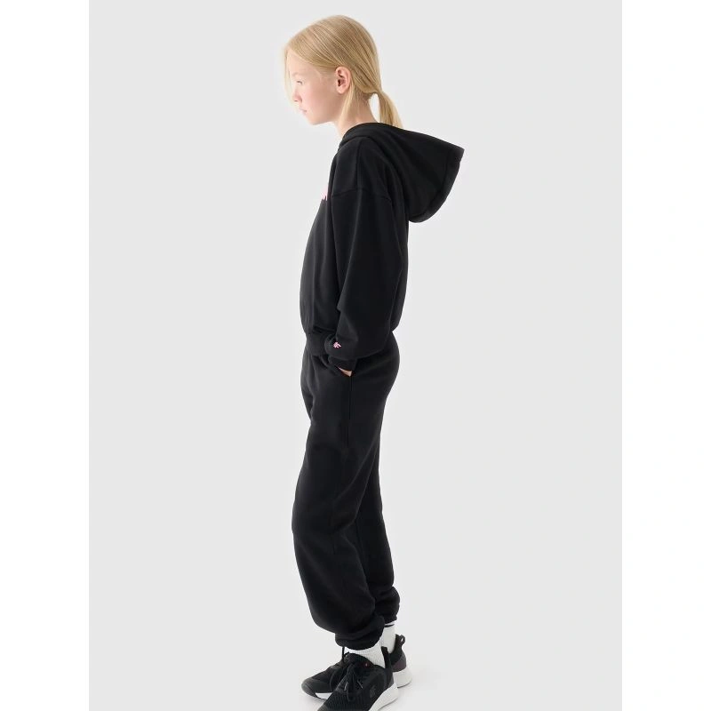 Dívčí tepláky 4F jsou vyrobeny ze 77 % z bavlny, díky čemuž jsou měkké, odolné a příjemné na dotek. Díky přídavku polyesteru (23 %) si materiál zachovává svůj střih a odolává opotřebení i po mnoho ročních období. Počesaný vnitřek zaručuje větší hřejivost, takže kalhoty jsou ideální volbou pro chladnější dny. Na bocích jsou 2 otevřené kapsy. Pružný pas je bez možnosti regulace.