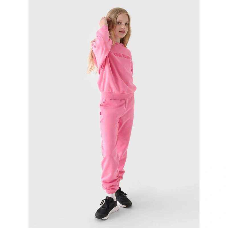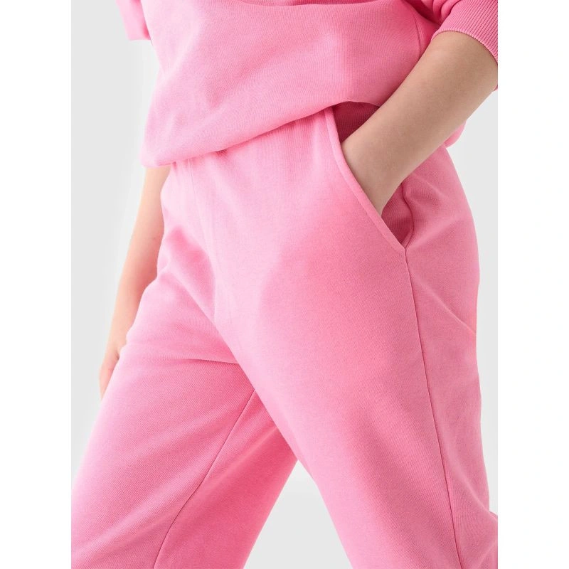 Dívčí tepláky 4F jsou vyrobeny ze 77 % z bavlny, díky čemuž jsou měkké, odolné a příjemné na dotek. Díky přídavku polyesteru (23 %) si materiál zachovává svůj střih a odolává opotřebení i po mnoho ročních období. Počesaný vnitřek zaručuje větší hřejivost, takže kalhoty jsou ideální volbou pro chladnější dny. Na bocích jsou 2 otevřené kapsy. Pružný pas je bez možnosti regulace.
