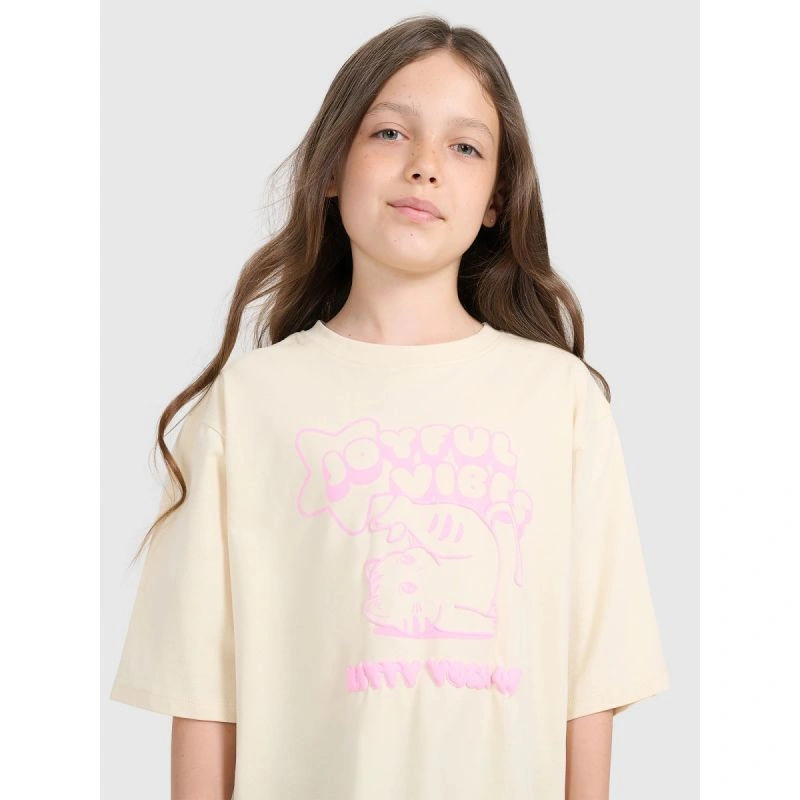 dívčí tričko 4F je univerzální kousek šatníku, který se skvěle hodí pro každodenní ležérní a sportovní styl. Rovný střih a módní potisk na přední straně mu dodávají výrazně mladistvý charakter.