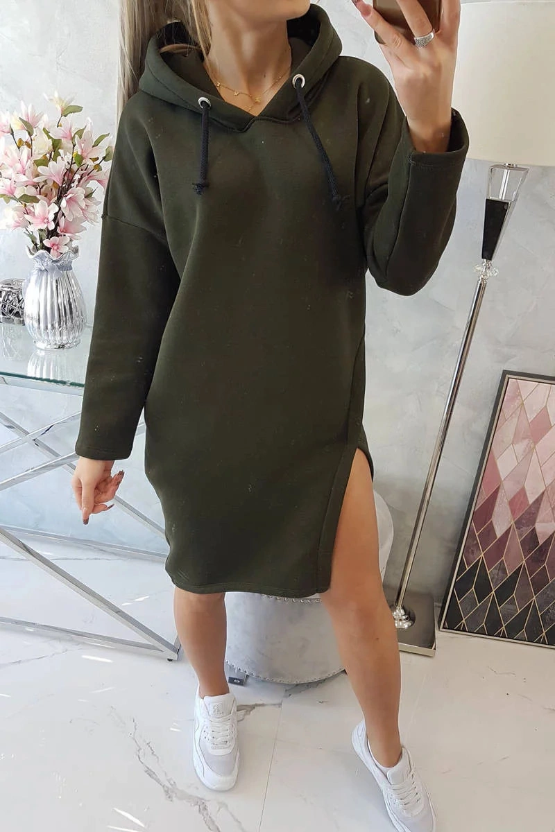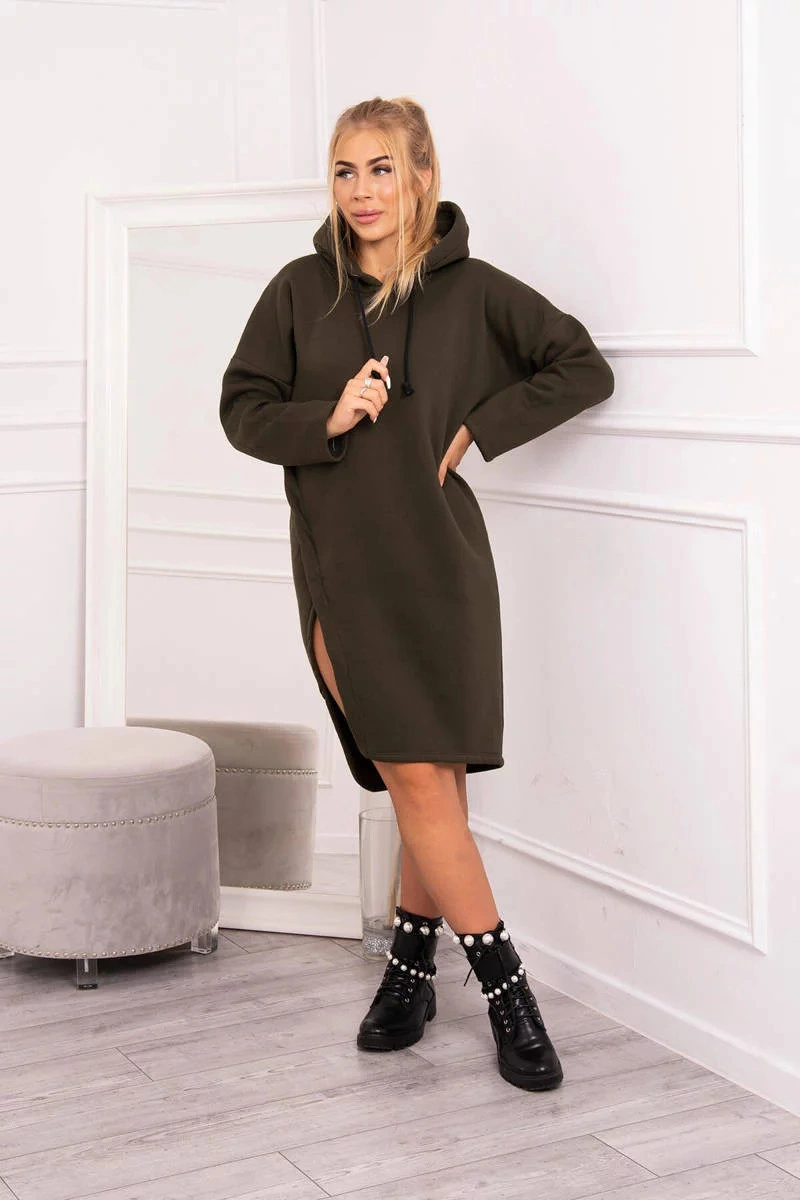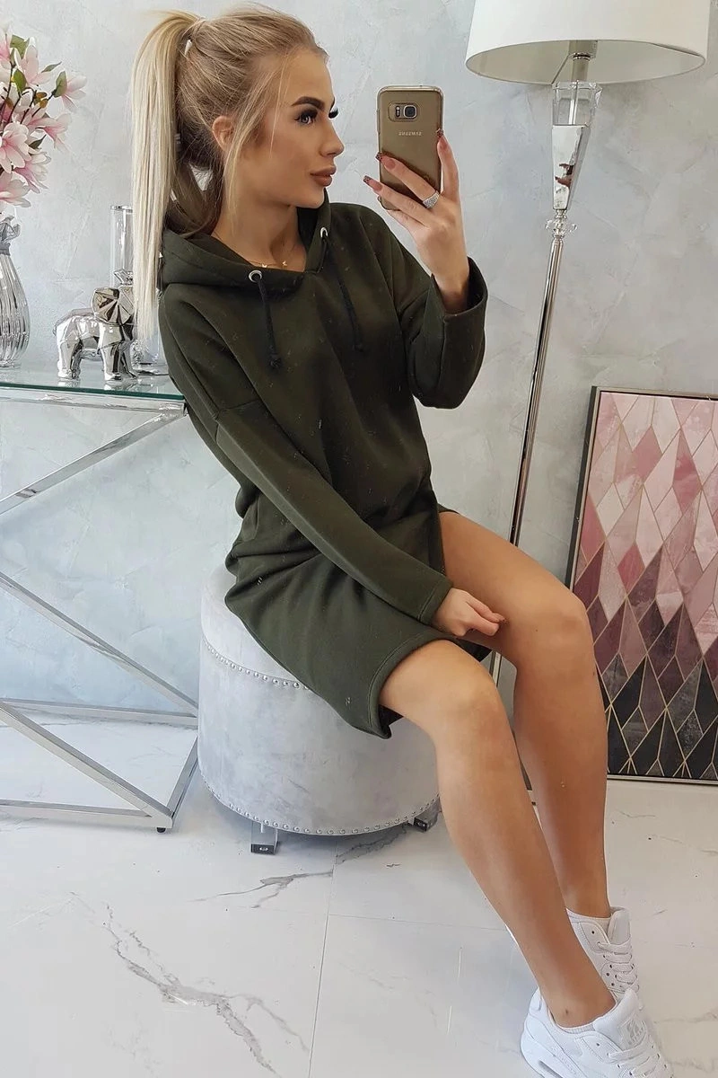 Představujeme vám módní dlouhou tuniku s kapucí. Šaty mají delší záda a rozparek na boku. Velmi zajímavý návrh pro každou dámu. Šaty jsou vyrobeny z vysoce kvalitního materiálu. Velikost je univerzální a vyhovuje dámám, které nosí velikost S, M nebo L.