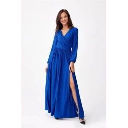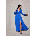 Brokátové maxi šaty mají na zádech ozdobnou vázačku. Kreace krásně sedí na těle bez ohledu na velikost. Obálkový výstřih zeštíhluje siluetu a prodlužuje krk. Další předností je pásek, který efektně vyznačuje pas a zeštíhluje siluetu. Smyslný průstřih odhaluje a zvýrazňuje nohy. Zapíná se na zip umístěný na zadní straně šatů. Kreace krásně sedí na těle bez ohledu na velikost. Večerní šaty jsou fantastické pro pohyb při tanci, zaručený WOW efekt. Každá žena se v nich bude cítit výjimečně. Perfektní volba pro zvláštní příležitosti, svatby, večírky, bankety, plesy, všechny druhy oslav. Výrobek je vyroben a ušit v Polsku.