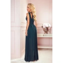 Justine - to jsou dlouhé dámské šaty s výstřihem, rozparkem na noze a zavazováním na zádech.