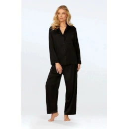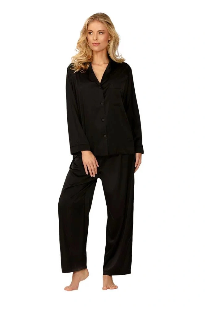 Pyžamo Amina je vyrobené z kvalitního saténu, je dlouhé a má elegantní černou barvu. Složení: 100% polyester (satén)