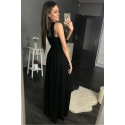 Dlouhé éterické šaty bez rukávů v černé barvě. Výstřih je zdobený světlými ozdobami. Skvěle se hodí pro mnoho příležitostí.