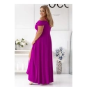 Elegantní dlouhé šaty s přesahujícím výstřihem, tenkými ramínky a rukávy. Šaty se oddělují v pasu a zapínají se na skrytý zip, spodek je rozkročený s rozparkem. Šaty jsou vyrobeny z hladkého splývavého materiálu.