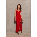Dlouhé šaty s odkrytými zády na ramínkách jsou vynikajícím návrhem mezi naší kolekcí večerních šatů. Jejich přiléhavý střih a brokátový materiál z ní udělají ohromující vzhled. Dlouhé šaty s odkrytými zády jsou vyrobeny z látky, která ohromí svou kvalitou. Dlouhé šaty jsou ozdobeny úžasným přiléhavým střihem. Mají ramínka, která jsou vzadu zkřížená na odkrytých zádech. Maxi šaty jsou také zdobeny brokátovými drobnými částicemi v materiálu, které okouzlí každého. Jejich přeložený, přesýpací výstřih opticky prodlouží a zeštíhlí postavu, a rozpark na noze jí dodá půvabný vzhled. Šaty s odkrytými zády budou ideální volbou během romantického večera ve dvou. K nim vybrané boty na vysokém podpatku a malá kabelka vytvoří krásný, elegantní outfit. Výrobek je vyroben a ušit v Polsku.