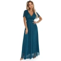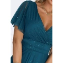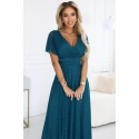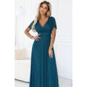 Elegantní šaty MELANIA v lahvově zelené barvě jsou jedinečnou nabídkou značky Numoco Basic. Dlouhá třpytivá kreace s decentním výstřihem do V a lehkými, vzdušnými rukávy krásně zvýrazňuje ženskou siluetu. Rozšířený spodní lem umožňuje volnost pohybu a díky němu šaty vypadají skvěle při tanci.