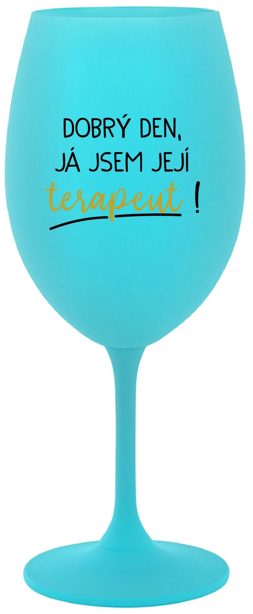 Vinná tyrkysová sklenice s originálním motivem DOBRÝ DEN, JÁ JSEM JEJÍ TERAPEUT! je krásným a osobitým dárkem, které ale využijete i Vy sami třeba ve chvílích, kdy si budete chtít zpříjemnit náročný den. Tyto originální vinné sklenice jsou totiž nejen pro výjimečné události, ale i pro běžné večery, které si chcete zpříjemnit sklenkou dobrého vína. Jistě proto potěší každého milovníka vína, i toho, kdo si umí svůj život vychutnat plnými doušky.