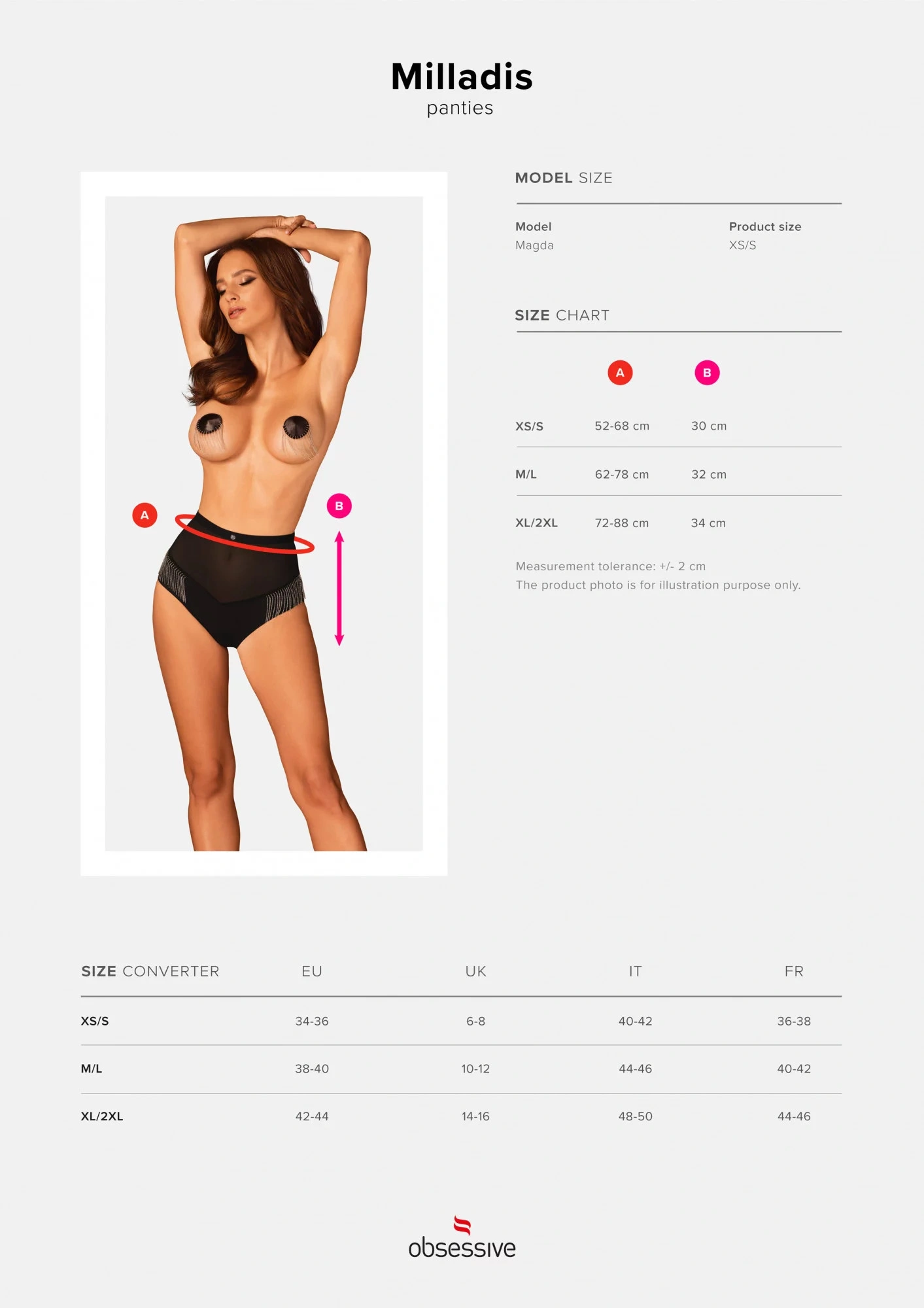 Kalhotky s vysokým pasem z kolekce Milladis jsou skutečným klenotem ve světě spodního prádla. Neuvěřitelně sexy střih a jedinečné zdobení dokonale zdůrazňují křivky a dodávají celku charakter. Tento design vytvoří dokonalou kombinaci s rukavicemi a návleky na bradavky ze stejné kolekce a vy se budete cítit jako skutečná, mocně sexy celebrita!