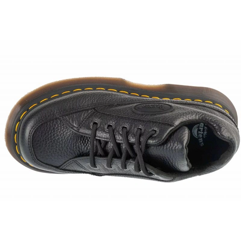 Nová pětioká obuv Buzz, inspirovaná našimi siluetami z 90. let, poutá pozornost shora dolů. Stojí na naší robustní křížové podrážce Buzz - vyznačuje se drážkováním DM, žlutým prošíváním a listovým vzorem na podrážce. Svršek z měkké kůže Fresco Nappa má pohodlný polstrovaný límec a nafouklý pogumovaný štítek, který odráží kontury podrážky.