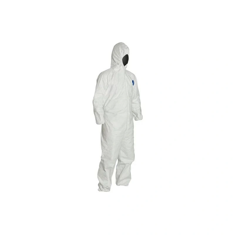 - přední část obleku je vyrobena z netkaného materiálu Tyvek®, který chrání před rozstřikováním kapalných chemikálií a jemných částic.