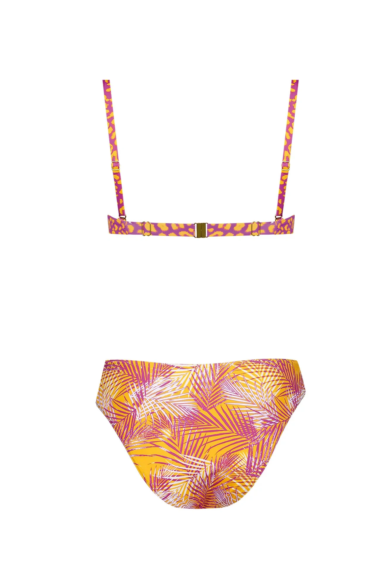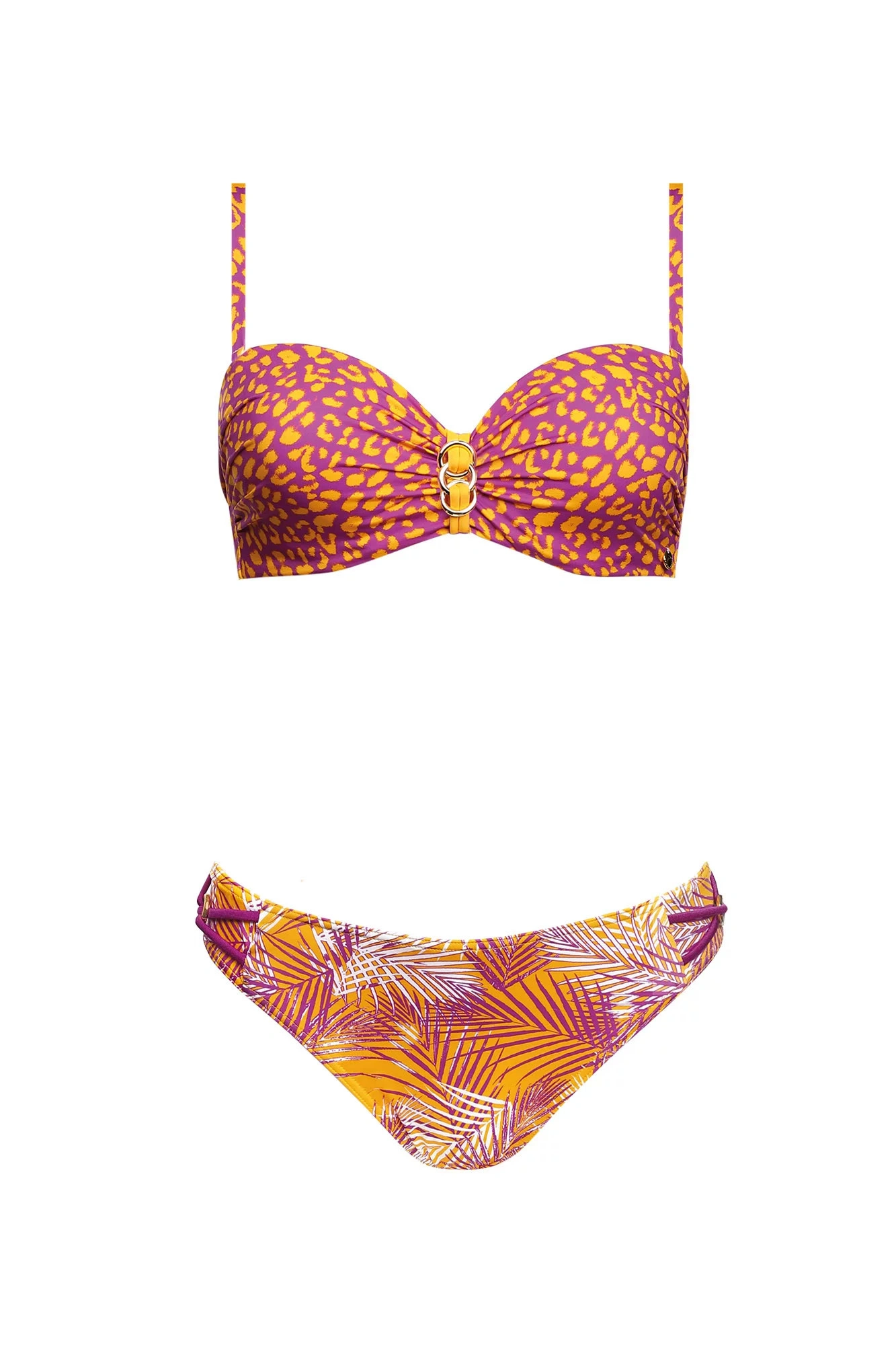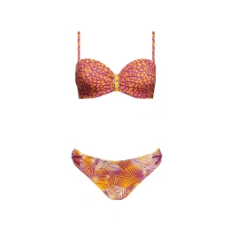 Dámské dvoudílné plavky značky Self. Vrchní díl je vyztužený kosticí + pěnovými vycpávkami. Zdoben je zlatými prvky.