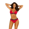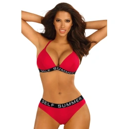Dvojdílné plavky sportovního střihu. Podprsenka s vyztuženými tvarovanými košíčky. Ramínka zavázaná za krkem pro sadu klasických kalhotek.