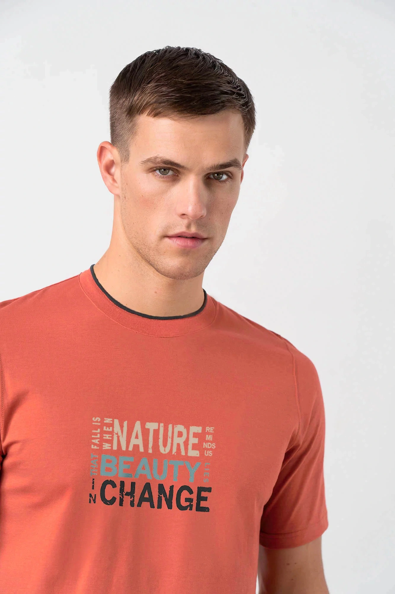 - horní část: jednobarevná, kulatý výstřih, krátký rukáv