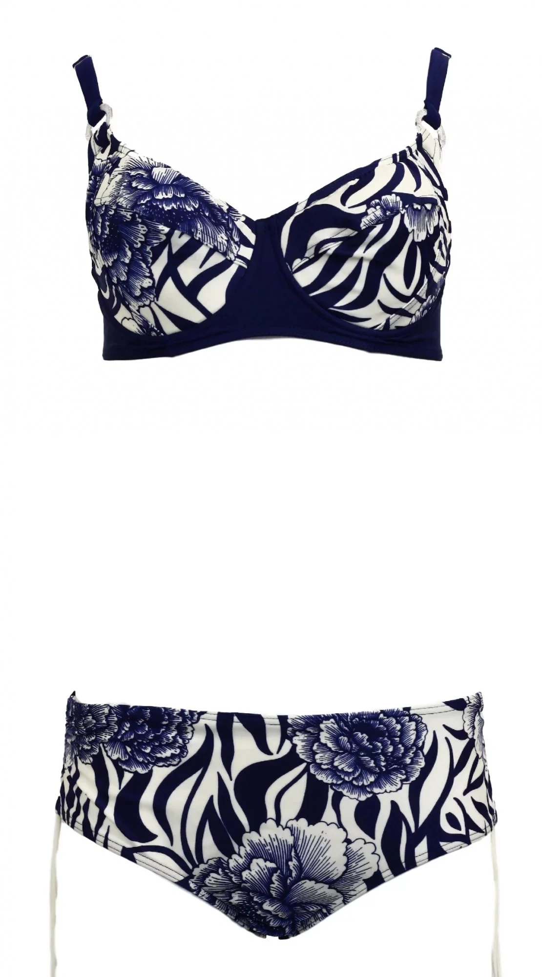 Dvoudílné dámské plavky, vrchní díl mírně vyztužený, bez kostice, spodní část podprsenky na posouván